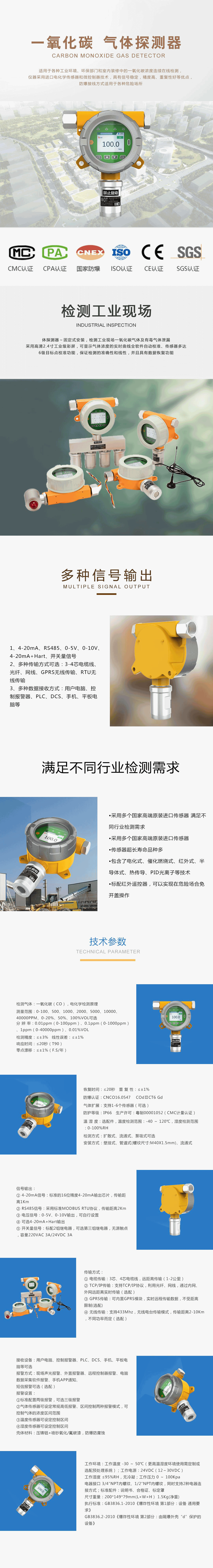首页 > 产品中心 > 气体检测仪 一氧化碳探测器 适用于各种工业环境、环保部门和室内装修中的一氧化碳浓度连续仪器采用进口电化学传感器和微控制器技术,具有信号稳定,精度高、重复性好等优点,在线检测,防爆接线方式适用于各种危险场所。探测器~固定式安装,检测工业现场一氧化碳气体及有毒气体泄漏,采用高清2.4寸工业级彩屏,可显示气体浓度的实时曲线全软件自动校准、传感器多达6级目标点校准功能,保证检测的准确性和线性,并且具有数据恢复功能。 Category: 气体检测仪 Tags: 气体检测仪, 一氧化碳探测器, 有害气体监测, 一氧化碳监测仪, 气体监测仪 Description Description Related products 多功能气体检测仪 一氧化碳探测器