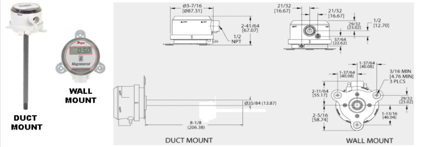 | MS-311 | 0-10 V | 1", 2", 5" w.c. (250, 500, 1250 Pa) | 面板 |